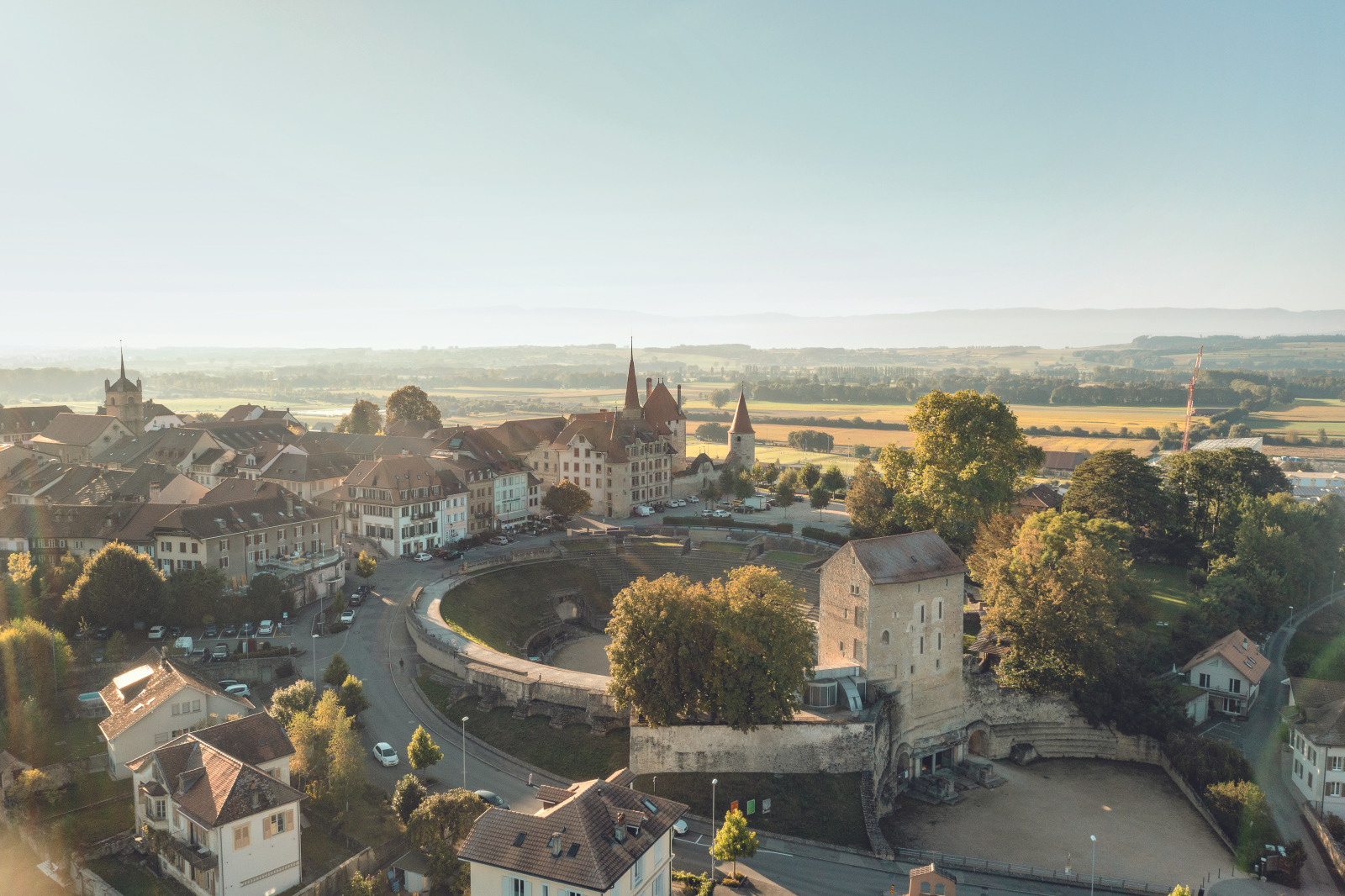 Ancienne capitale de l’Helvétie romaine, Avenches possède l’un des sites archéologiques les plus importants de Suisse. Dominé par une tour carrée qui renferme le Musée romain, l’amphithéâtre impressionne par ses dimensions et demeure le mieux conservé du pays. Au-delà de ces trésors du passé, le bourg actuel – classé parmi les plus beaux villages de Suisse – charme par sa rue centrale en arcades, ses escaliers irréguliers, son château du XIIIe siècle, ses monuments médiévaux et ses bâtisses historiques.